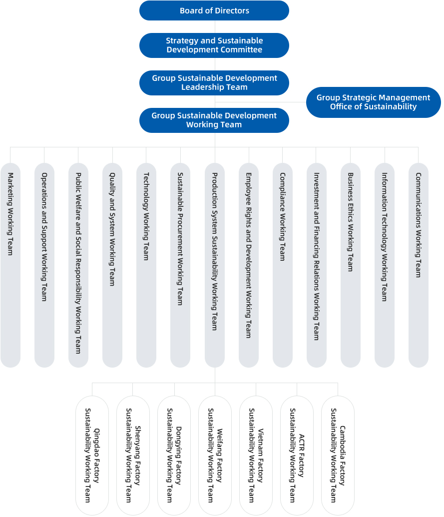 To implement the concept of sustainable development and more importantly, integrate it into our daily operations, we have established a sustainability governance framework, which ensures clearly defined responsibilities at all levels and facilitates effective ESG management. The Board of Directors, as the highest governing body with ultimate responsibility, oversees and makes decisions on sustainability-related issues, to ensure the alignment of our business strategy with our sustainability goals. The Board of Directors delegates authority to the Strategy and Sustainable Development Committee to directly oversee the decision-making and overall management of sustainability-related issues.